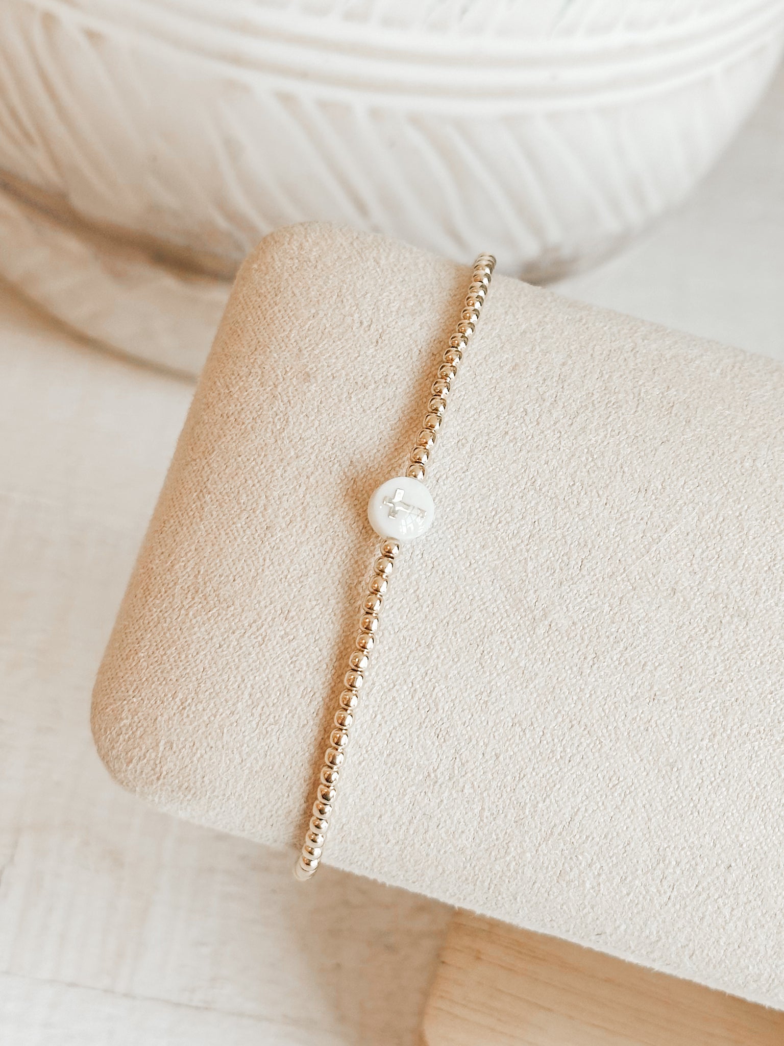 14K Gold Filled 2mm Cross Mother Of Pearl Bracelet