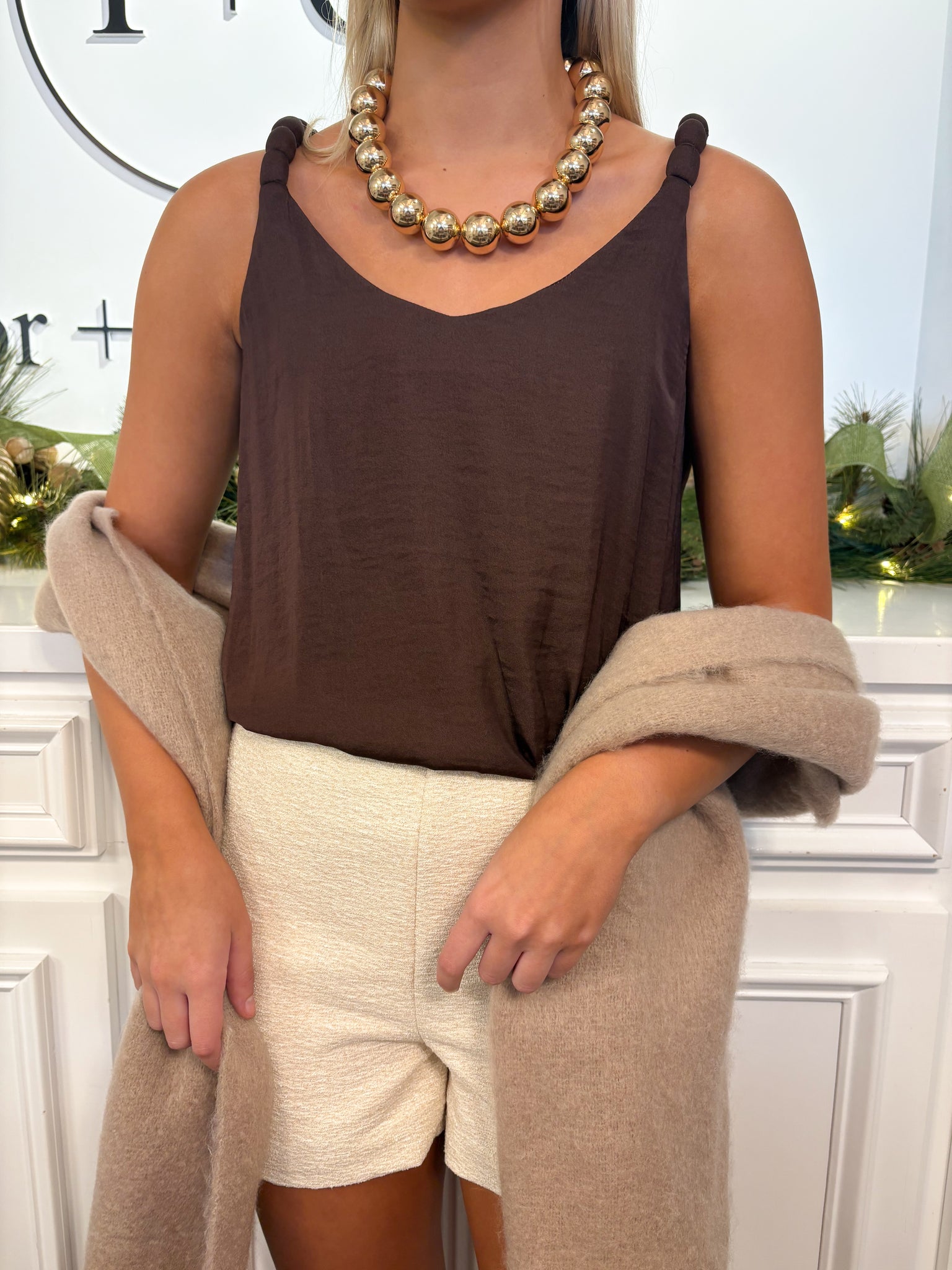 π Neutral Blanket Scarf With Fridge Detailing On Bottom!